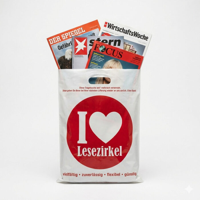 • Bequemer geht es nicht: Wir liefern die Zeitschriften in unserer kultigen Tragetasche direkt an Ihre Tür und nehmen die gelesenen Exemplare der Vorwoche einfach wieder mit.